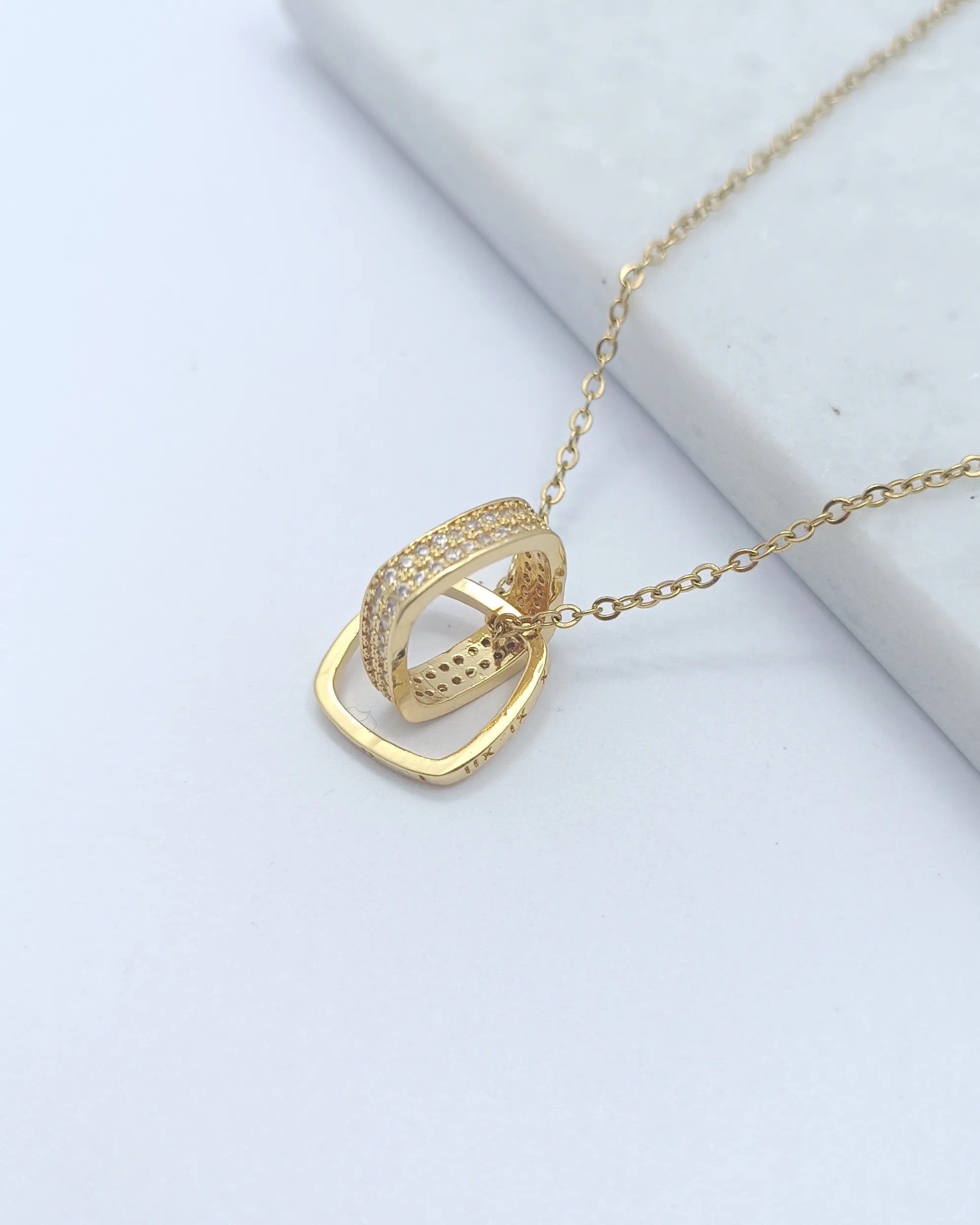 Modern İç İçe Kare Tasarım Kolye